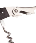 Featuring a grooved worm, foil cutter, and bottle opener, it is a complete and reliable tool. The double-hinged fulcrum system, widely favored by hospitality and restaurant experts, enables a two-step cork extraction: the first lever gently lifts the cork halfway, while the second completes the removal effortlessly.