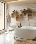 Enjoy smart details like a built-in phone holder to keep your device dry, a double hook for your loofah, and extra support to hold your reading material upright. The new wine glass holder adds the perfect touch for unwinding in style.