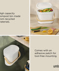 With a 1-gallon (4 L) capacity, it’s perfectly sized for daily kitchen scraps. The integrated bag-retaining slot keeps compost liners hidden and secure, while the included adhesive patch allows for tool-free mounting inside a cabinet, on a wall, or backsplash—whichever suits your space best.