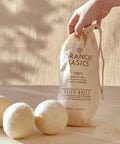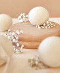 Each dryer ball is handmade from 100% wool, ethically sourced from sheep raised on a pesticide-free, organic farm.
