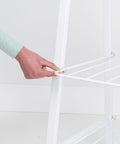 Spacious, elegant, and highly versatile, the Brabantia Linn Clothes Rack Large in White is the perfect addition to any home. With a sturdy bamboo rod and two height-adjustable shelves, it provides ample space for hanging, airing, or drying clothes while keeping your room neat and stylish. The bar ends offer extra space for hats or bags, and the smart open-shelf design allows long garments to hang freely without creasing.