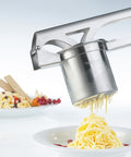 This versatile kitchen tool comes with three interchangeable discs, allowing you to mash potatoes, vegetables, and fruit, create long spaetzle or “spaghetti-style” ice cream, and shape spaetzle in a traditional hand-formed style. Designed for professional-quality results, the discs are easy to change for flexible use.
