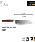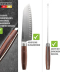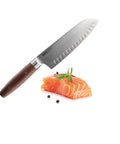 A true all-rounder in the kitchen. The ENNO Santoku knife features the traditional Japanese blade shape designed for the “three virtues” of Asian cuisine: meat, fish, and vegetables. Crafted from high-quality Solingen blade steel, its exceptionally sharp and precise edge ensures smooth, effortless cutting. Paired with a beautifully balanced walnut handle, this knife delivers both performance and elegance—perfect for everyday cooking.