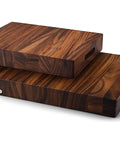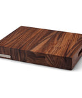 This massive chopping block is crafted in professional quality, combining robust durability with a modern design. Made from dark acacia wood sourced from sustainable cultivation, each piece is carefully handcrafted to highlight the wood’s natural beauty. The high material thickness ensures stability, while the recessed side handles allow for easy lifting. Its surface is refined with natural oils that enhance the wood’s rich grain and provide lasting protection.