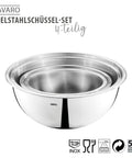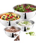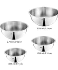 The rounded, elegant shape of the bowls offers plenty of space, whether for serving salads, kneading dough or beating eggs and whipping cream. Each bowl features a practical pouring rim, which makes it easier to pour out liquids and prevents annoying spillages on the worktop. Thanks to the practical, space-saving stacking format, the four bowls fit perfectly into each other and are multifunctional for any use in the kitchen.