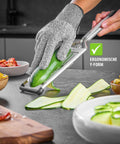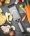 Handy and precise: The PRIMELINE V-Slicer cuts fruit and vegetables effortlessly and evenly into slices of 0 - 5 mm. The simple and intuitive adjustment using the dial allows the thickness of the slices to be adapted precisely to the requirements in the kitchen, whether for wafer-thin potato crisps or thicker vegetable slices for casseroles and salads. Its high-quality, ultra-sharp V-blade allows both tender tomatoes and firm root vegetables to be prepared in no time at all.