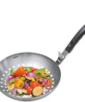 The perforated vegetable wok is the durable and environmentally friendly replacement for the one-way aluminium trays generally used for grilling vegetables! Put the veg in the wok, place the wok on the grill (or in the oven), detach the handle with one push of your thumb and re-attach it equally easily after cooking. Made of high-grade stainless steel, the vegetable wok can of course be used in the oven as well. Can be cleaned in the dishwasher.