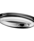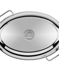 The stylish stainless steel lid features a TransTherm® base and can be turned over to function as a separate shallow pan, suitable for both stovetop cooking and oven use.